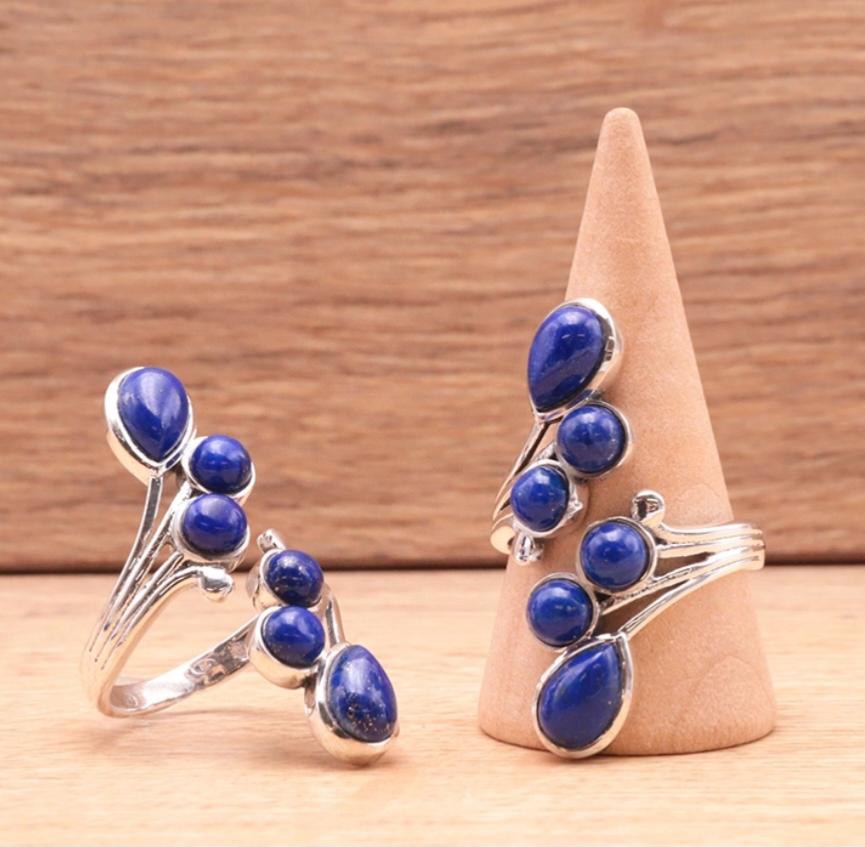 Notre jolie bague artisanale est sertie de pierres de Lapis-lazuli