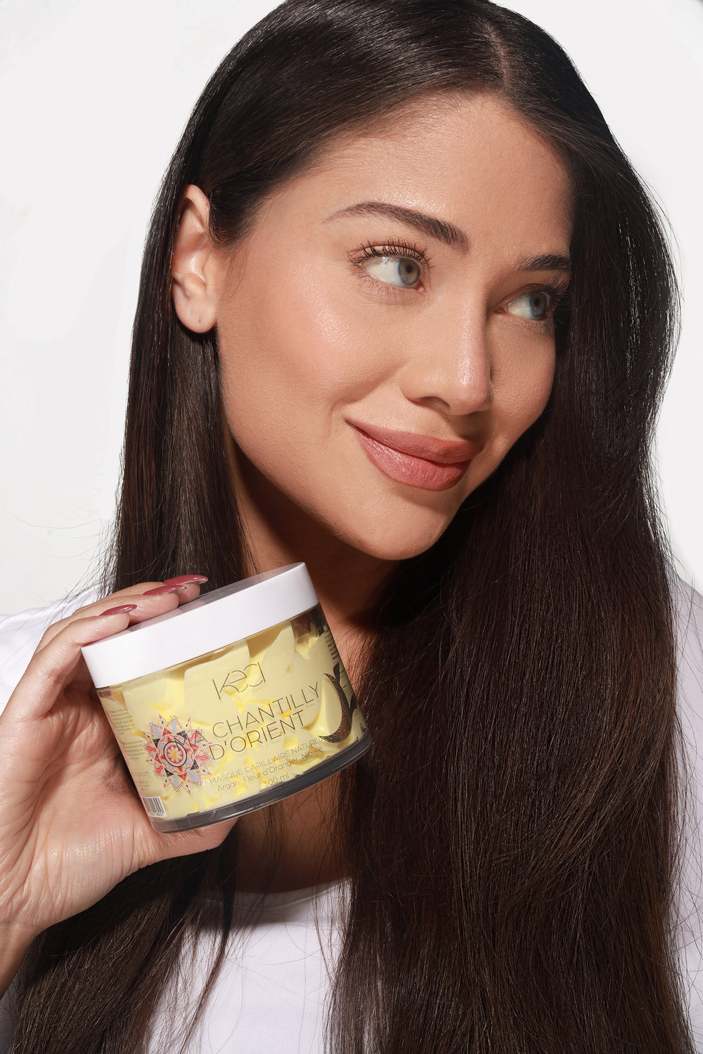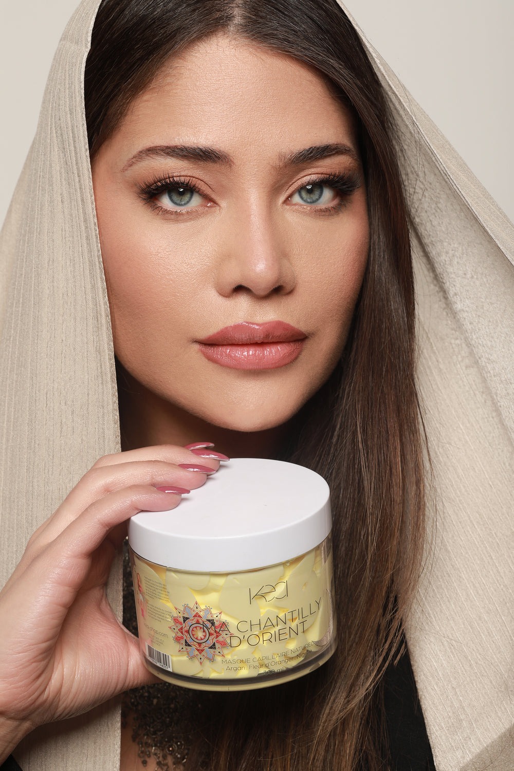 Ma Chantilly d'Orient est un soin élaboré à base d'huile d'argan, de fleur d'oranger et d'huile de nigelle. Une recette précieuse pour nourrir, éclairer et protéger vos cheveux & votre peau.