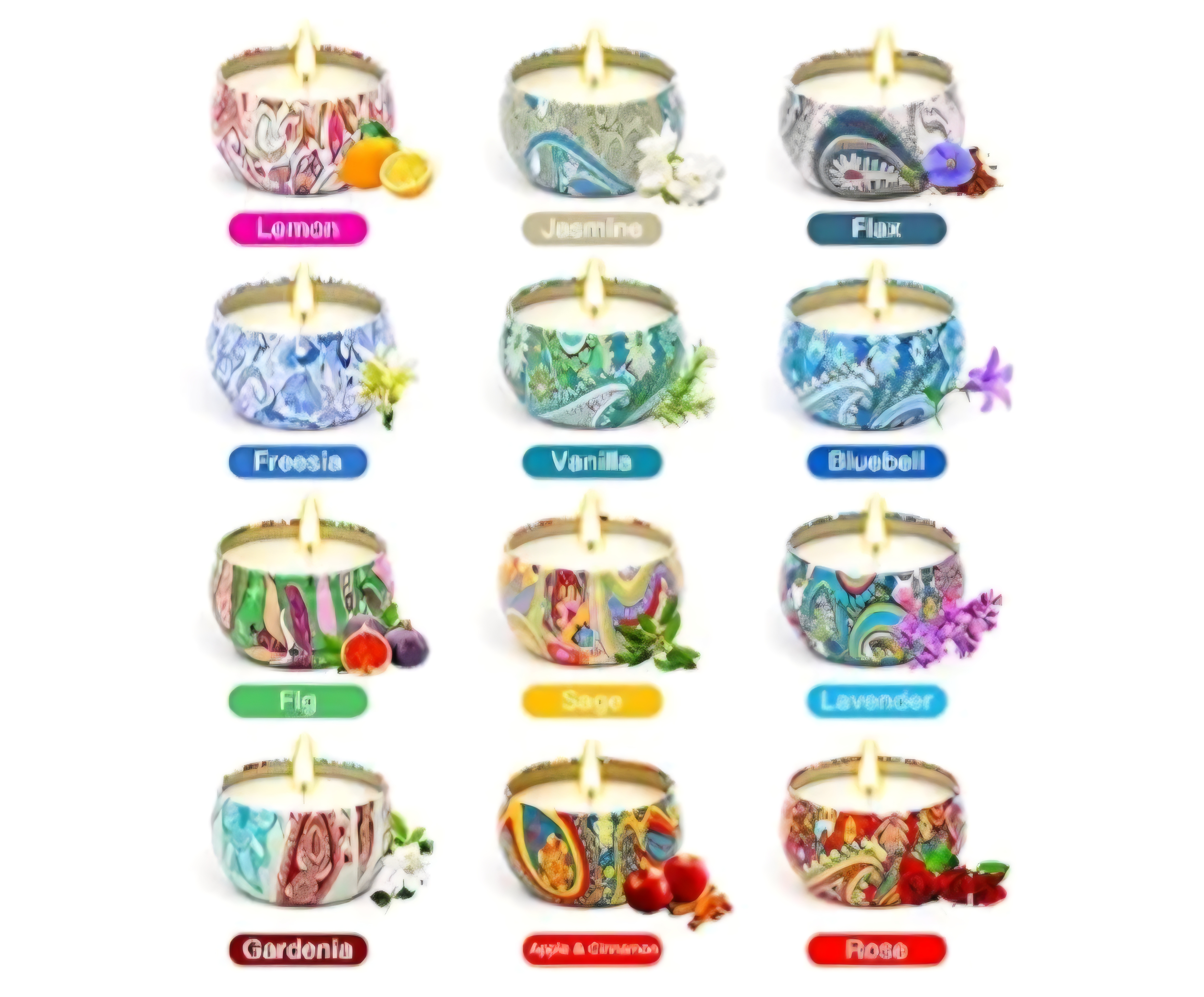 Un superbe coffret de 8 bougies parfumées 100% naturelles à base de cire de soja.