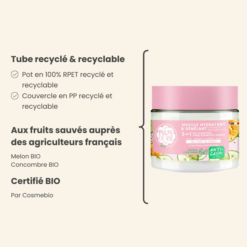 Notre masque nourrissant certifié BIO est spécialement conçu pour nourrir vos longueurs.